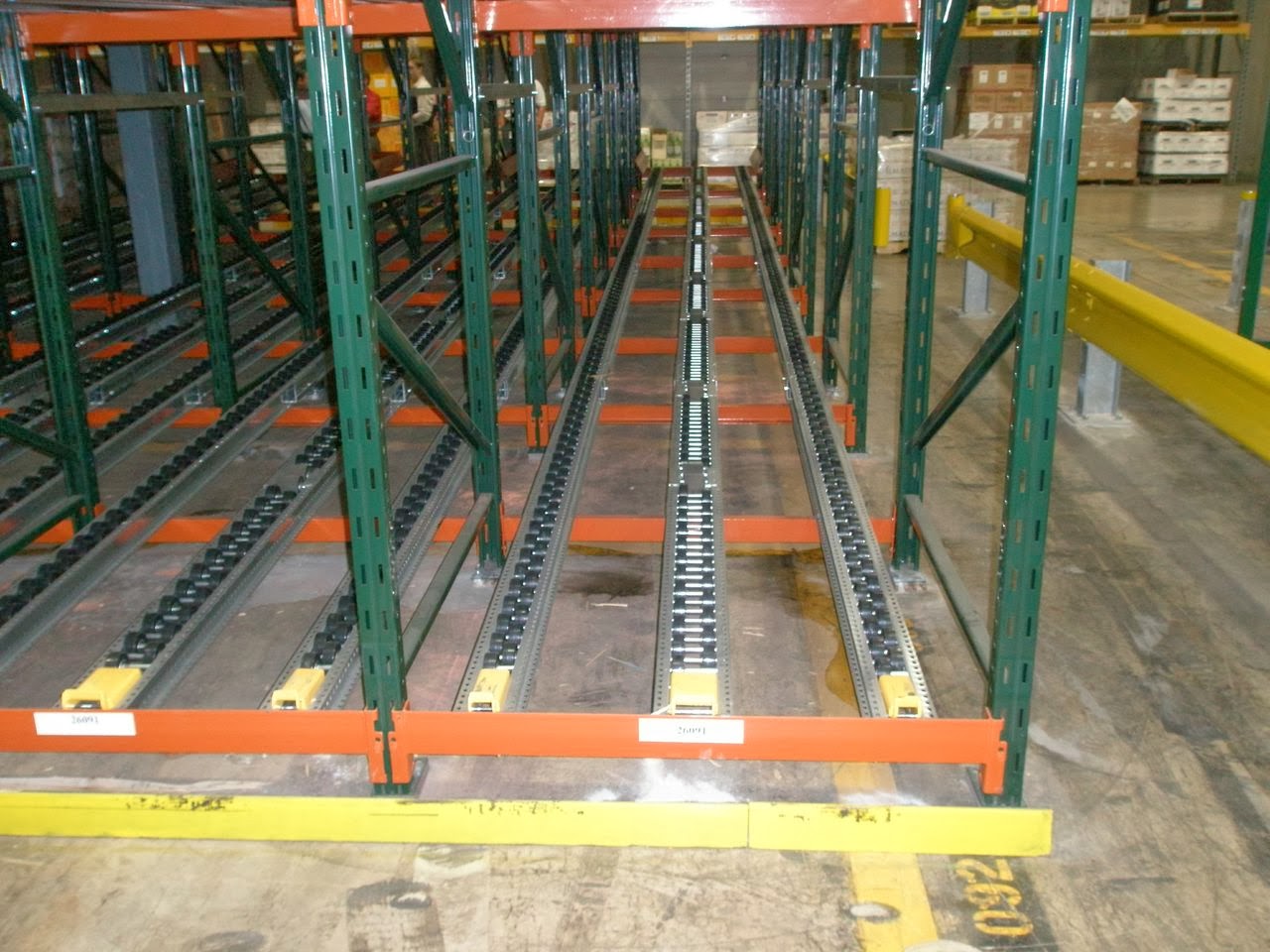 Pallet flow pallet storage racks offer many advantages and benefits to just about any warehouse storage system, especially high-density storage systems that require a FIFO solution. Some of the many benefits include:
