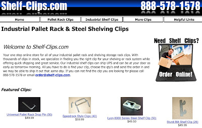 To start off 2011 on the right note, we decided to launch a new online tool called Shelf-Clips.com. Shelf-clips.com was built to offer clients a solution to their missing or damaged safety and shelving clips. People buy steel shelving and pallet rack on the used market because it is more economical and can offer them the same storage for close to half of the cost of new. The problem is that the buyers rarely go through and count the shelf clips or beam safety pins on their rack before they buy it. This leads to them searching the internet for hours trying to match up the right clip so they can finish their project. We turn hours into minutes and welcome them to shelf-clips.com your one-stop shop for all of your industrial steel shelving clips and pallet rack beam clips.