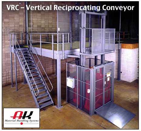 Here are some of the most common names for a VRC lift: Vertical Reciprocating Conveyor (VRCs), Vertical Conveyor, Material Lift, Freight Lift, Custom Lift, Vertical Lift, Mezzanine Lift, Modular Lift, Mechanical Lift, Hydraulic Lift, Freight Elevator, Continuous Lift, Industrial Lift, Continuous and Vertical Conveyor just to name a few.